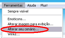 • Depois na janela principal do msn clique em 'Alterar seu cenário'