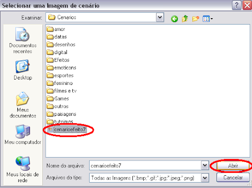 • Localize a pasta em que você salvou o cenário, escolha o cenário que você deseja e clique em abrir: